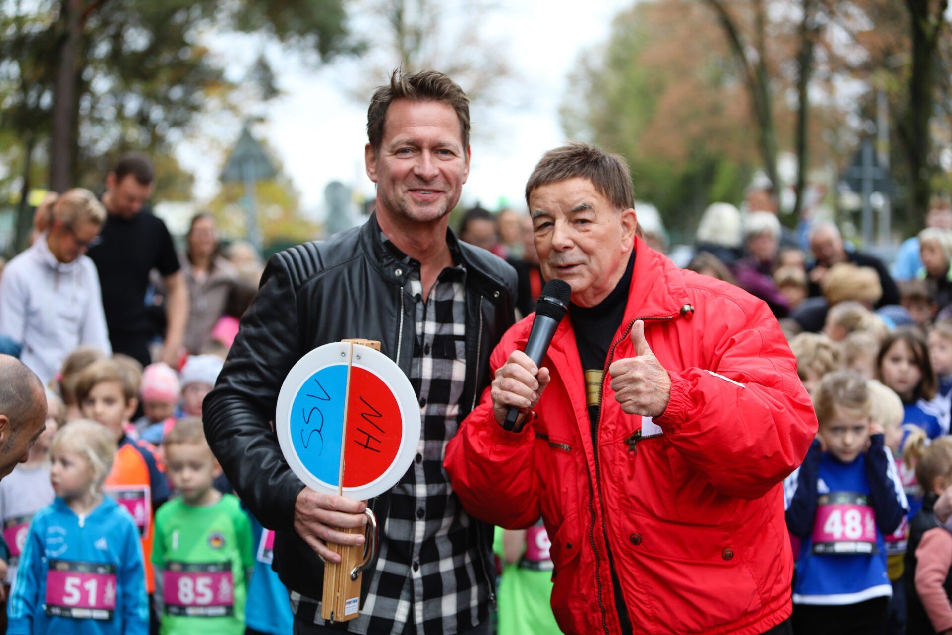 Für das Jubiläum hatte sich der Verein etwas ganz Besonderes einfallen lassen: Gerhard „Adi“ Adolph, Moderator der beliebten DDR-Fernsehsendung „Mach mit, mach’s nach, mach’s besser“, übernahm das Warm Up für den 400-Meter-Bambini-Lauf und unterstützte den Verein bei der nachmittäglichen Siegerehrung.