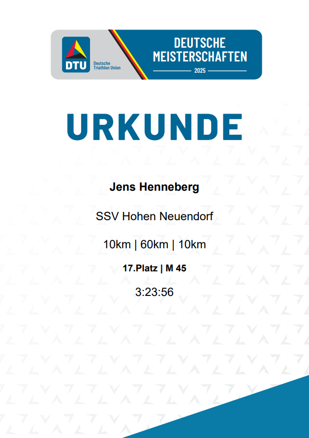 Mit seiner Endzeit wurde Jens gleichzeitig in der Deutschen Meisterschaft gewertet und erreichte den 17. Platz seiner Altersklasse.